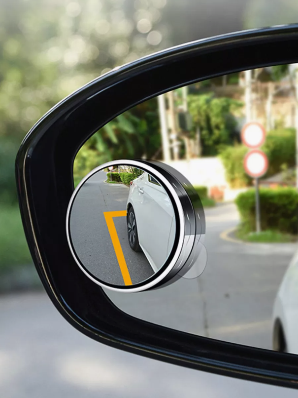 Ці круглі панорамні дзеркала легко кріпляться до бокових дзеркал автомобіля за допомогою клейкої основи.